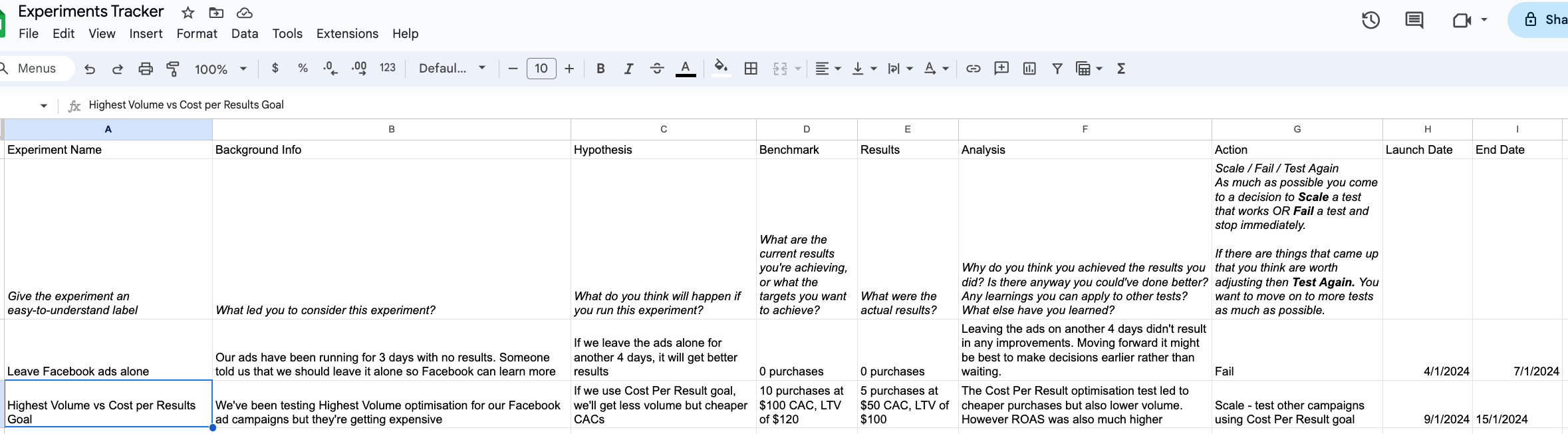 In my previous role as Head of Paid Social & Growth, where I managed a 7 digit advertising budget as well as ran several growth experiments, my team & I were able to launch at least 8 tests a week using the Growth Method.